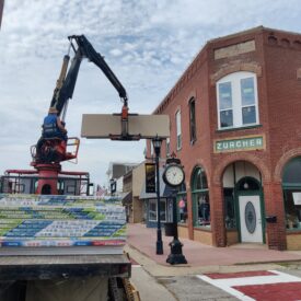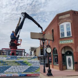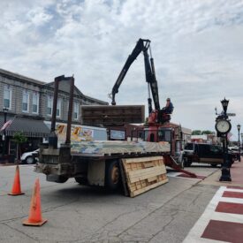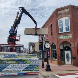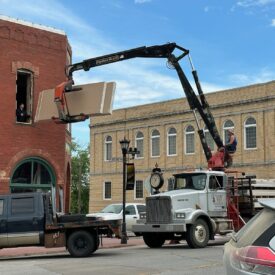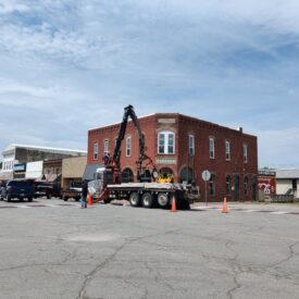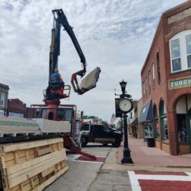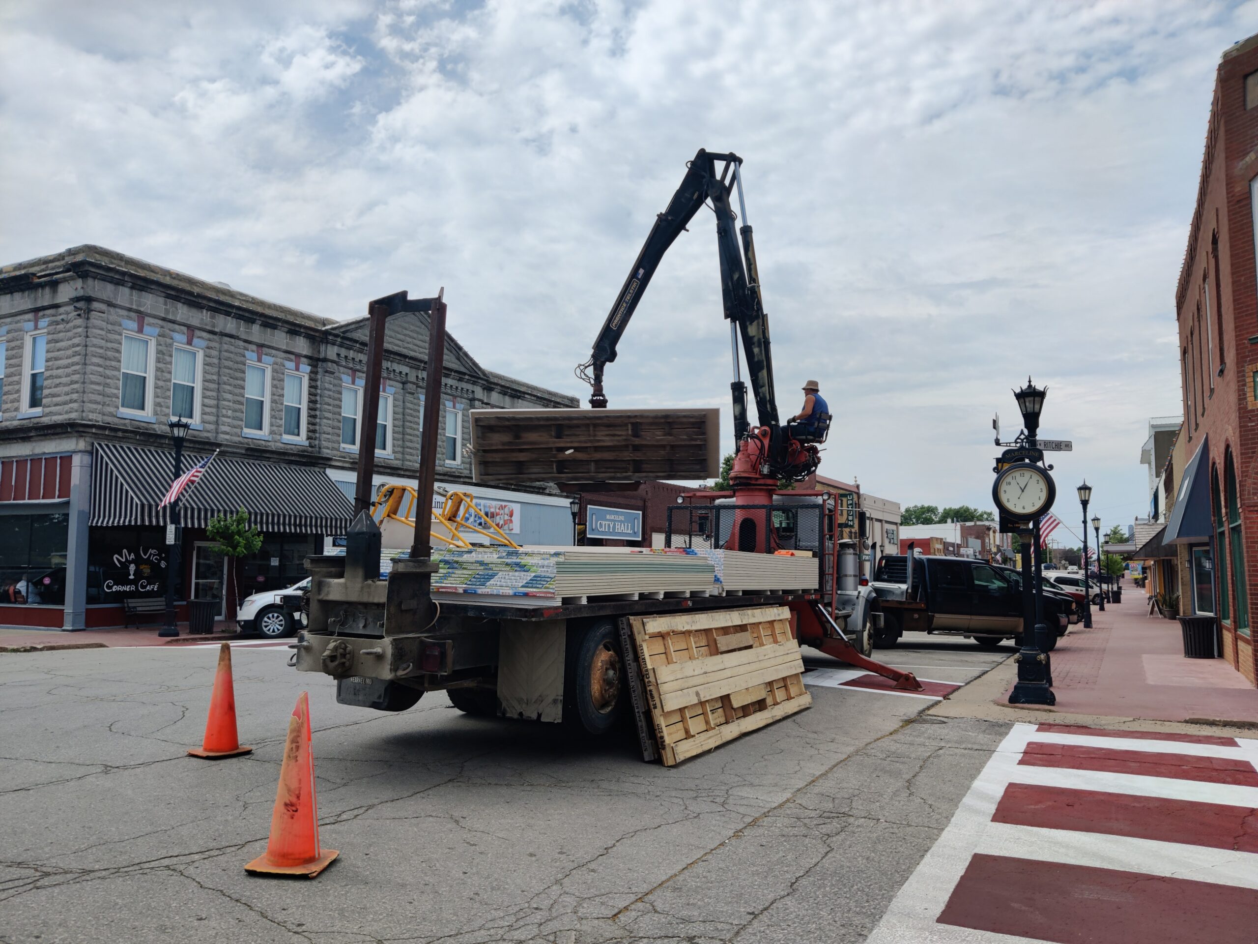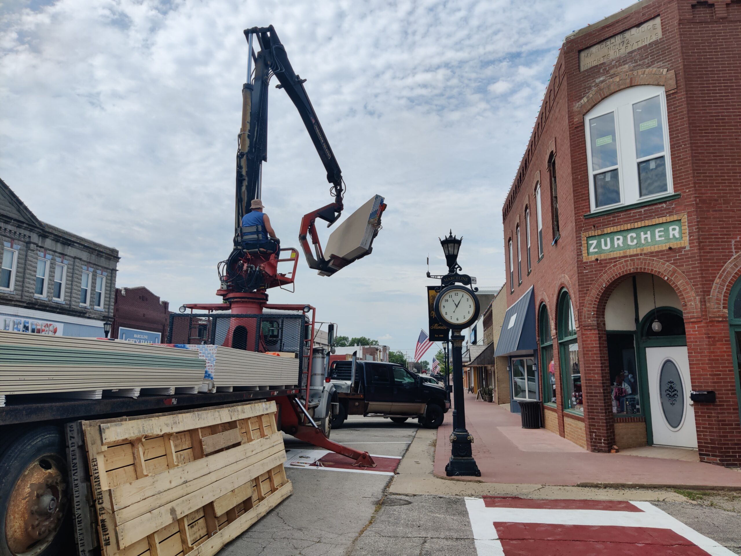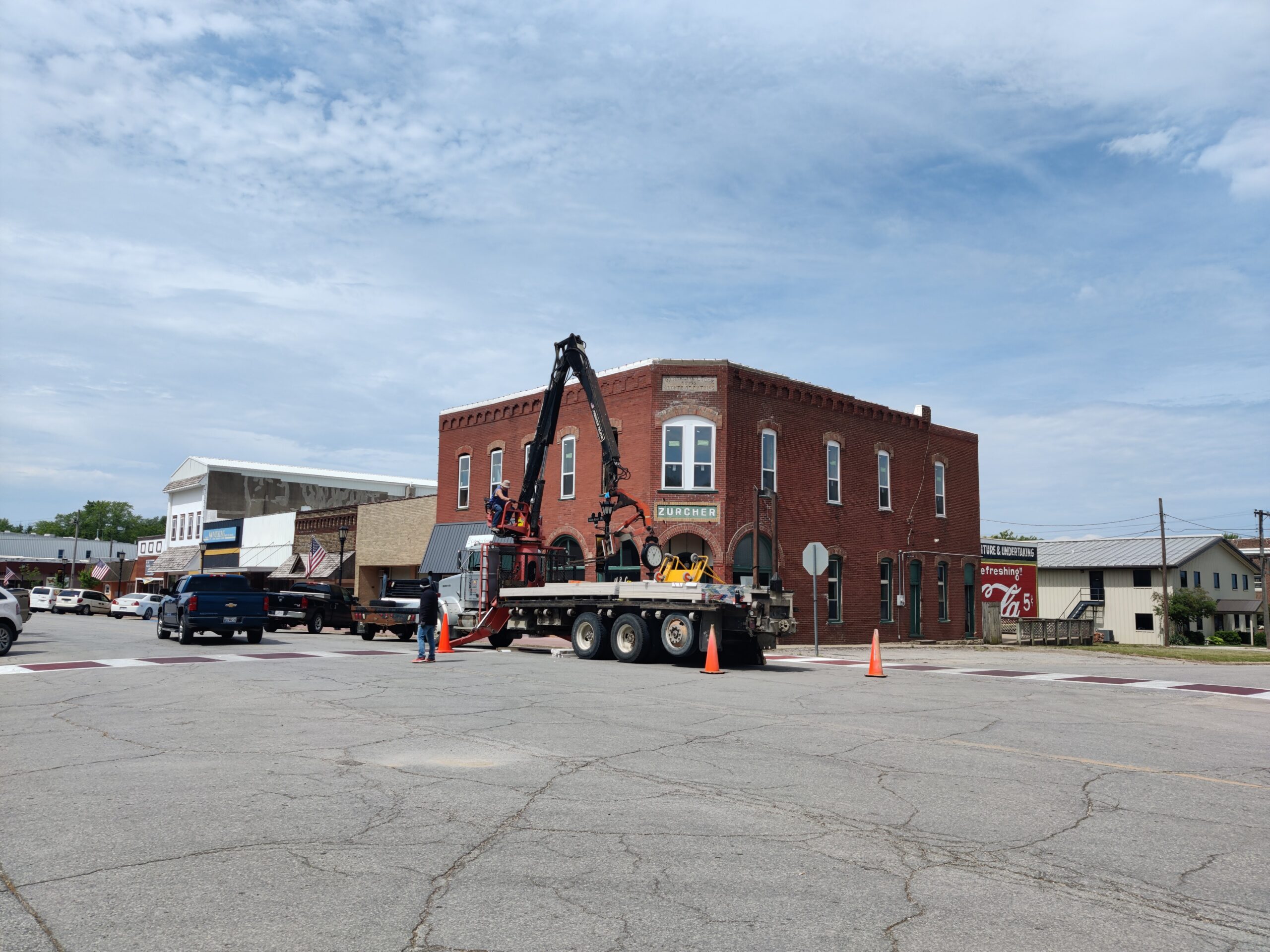 The 2nd floor of the Zurcher Building got a massive update in 2023. These pictures are of drywall being delivered through one of the window openings. The window had been removed so the boom could live the drywall through the opening without damage.
