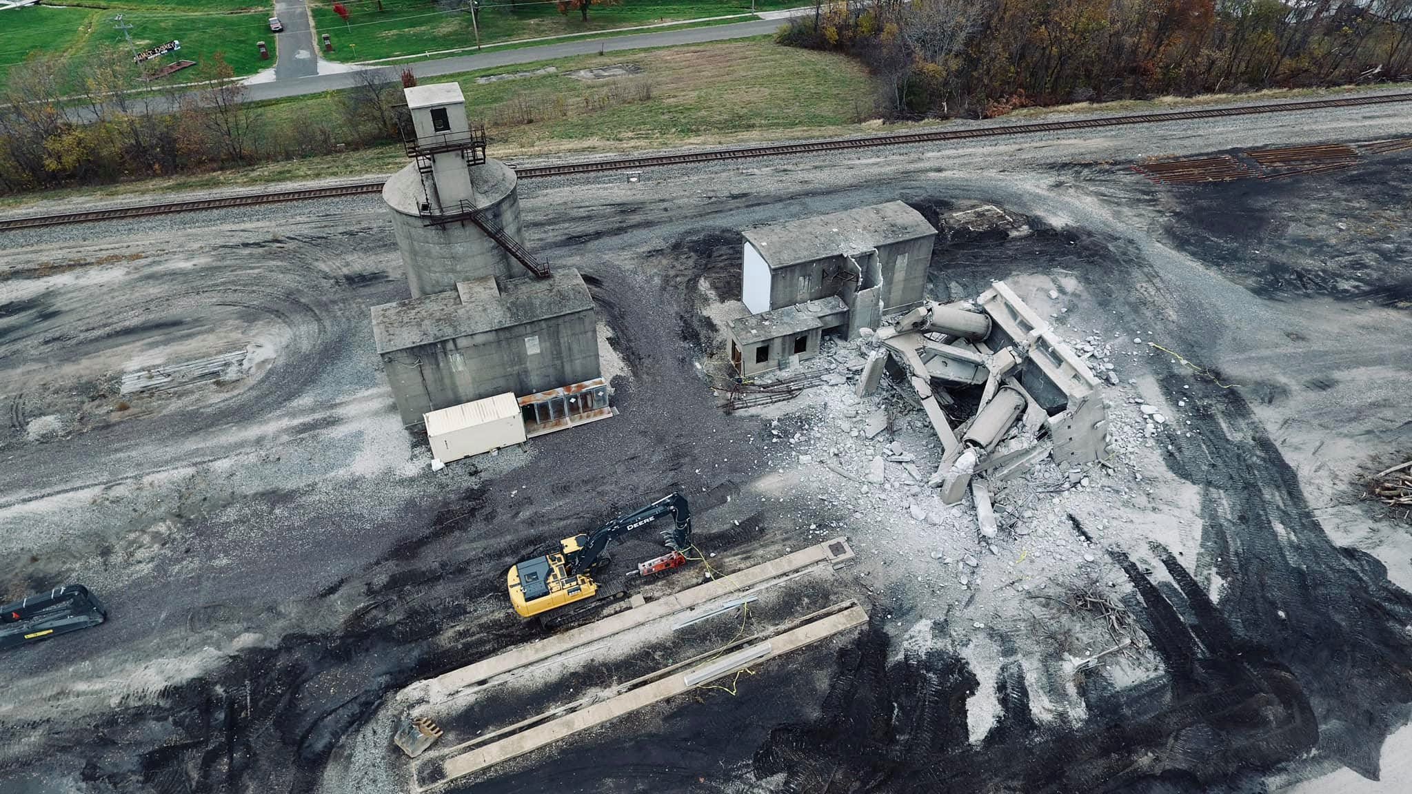 Demolition of the Santa Fe coaling tower in the BNSF railroad yard.