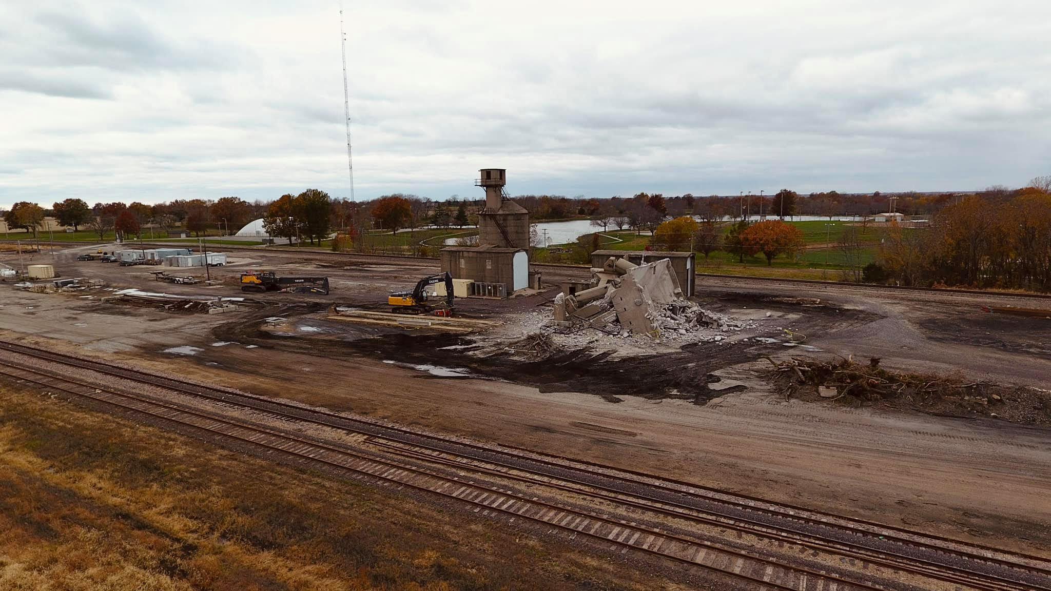Demolition of the Santa Fe coaling tower in the BNSF railroad yard.