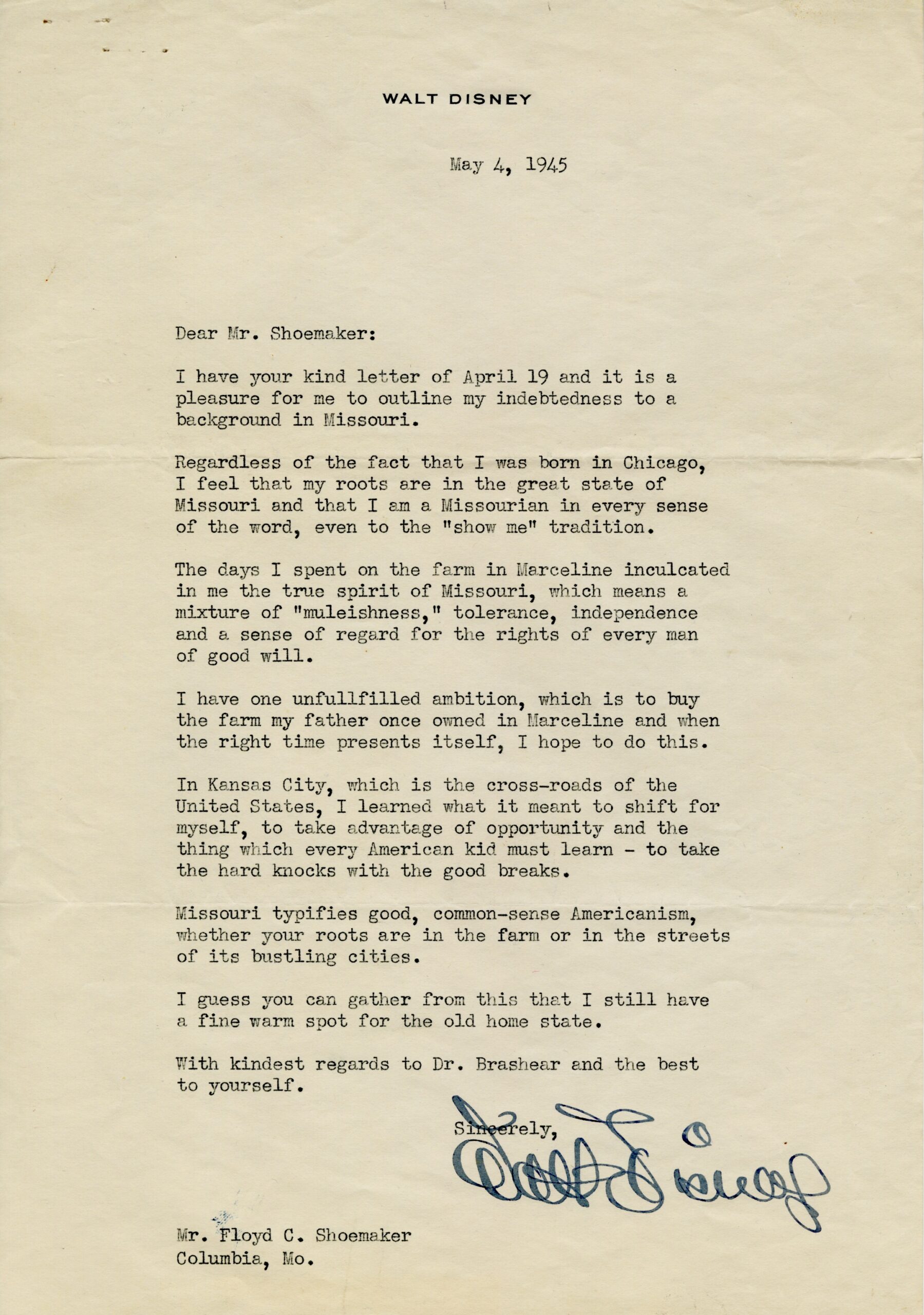 I have one unfullfilled ambition, which is to buy the farm my father once owned in Marceline and when the right time presents itself, I hope to do this.