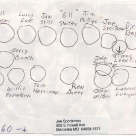 Standing, L-R: Dick Davolt, Jimmy Lesslie, Joe Sportsman, Jim Phillips, Bill Stauffer, Joe Still, Larry Eads, Bill Peterson.