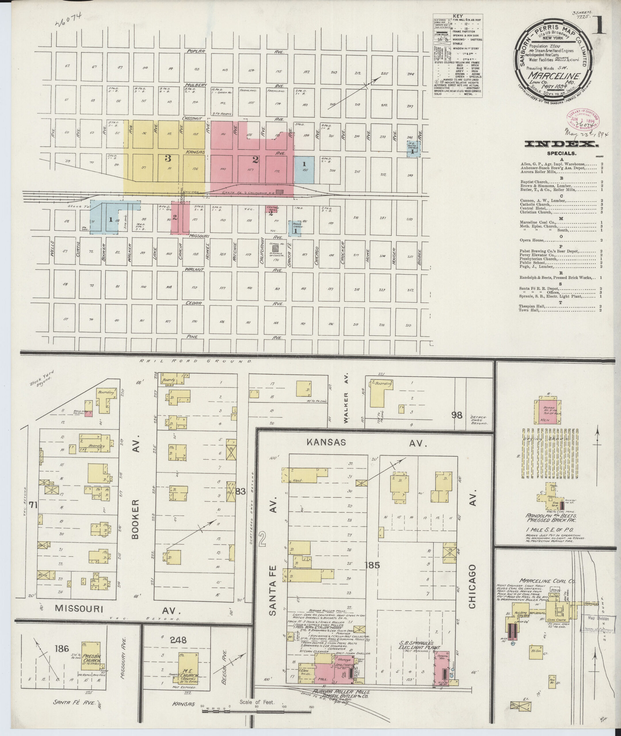 Sanborn Map – Marceline – May 1894 – 7225, Sheet 1 of 3